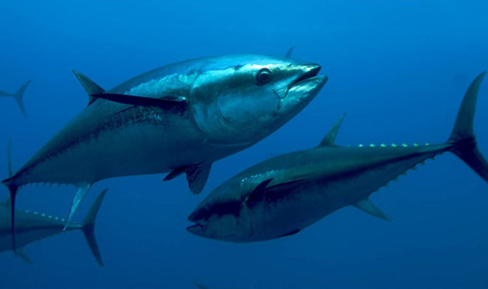 金槍魚(TUNA)是高度洄游并廣泛分布于太平洋、大西洋、印度洋的熱帶和溫帶廣闊水域,大多生活在遠離陸地的天然、無污染的大洋深處,棲息活動在100-400米水深環境中。
